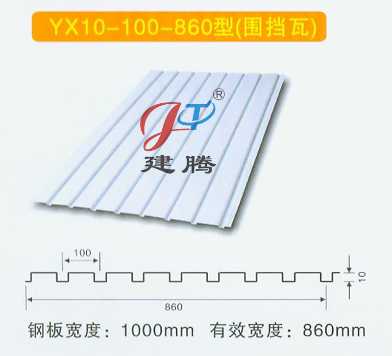 【品名解讀】YX10-100-860型彩鋼瓦,10代表波峰的高度10mm,100代表波峰間的寬度100mm,860指的是板材有效跨度,也就是使用寬度。