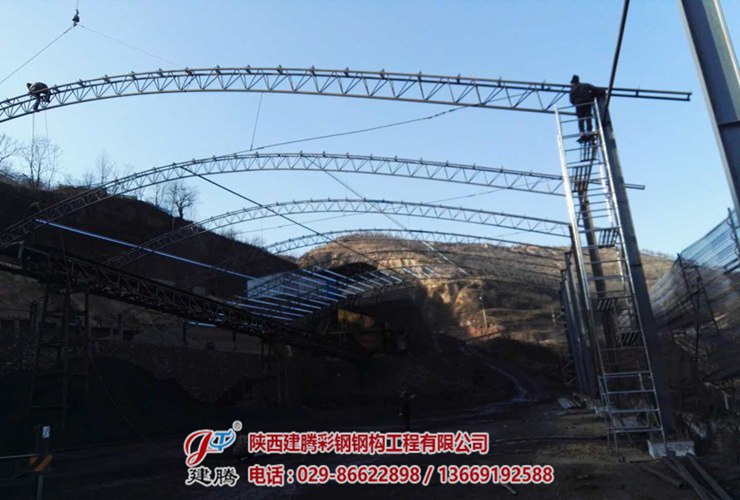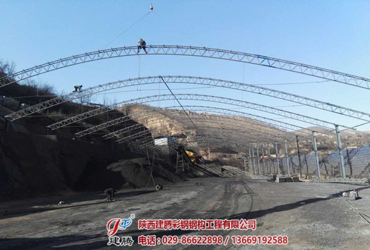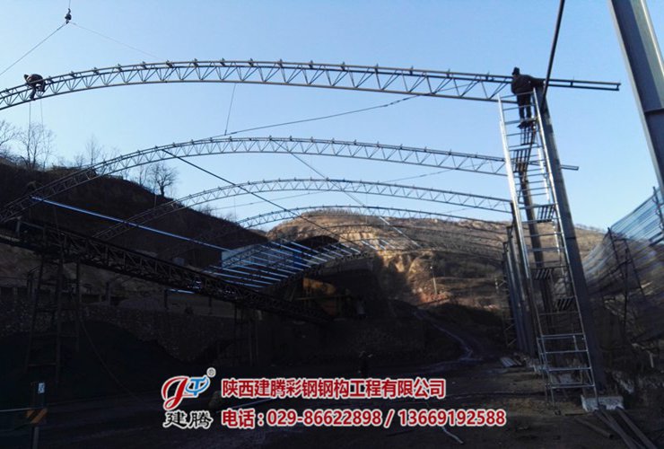 位于陜西省咸陽市彬縣的陳家坪三號井,有六千多平方的鋼結(jié)構(gòu)圓弧大棚,我司建筑人員經(jīng)過月余熱火朝天的緊張施工,克服工程建設(shè)中面臨的場地緊張,任務(wù)繁重,天氣惡劣等施工中遇到的諸多困難,現(xiàn)工程已經(jīng)進(jìn)行三分之二!