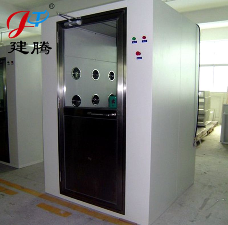 智能語(yǔ)音風(fēng)淋室?guī)в姓Z(yǔ)音提示系統(tǒng),在吹淋時(shí)由自動(dòng)語(yǔ)音系統(tǒng)提示讓人有次序的完成整個(gè)吹淋除塵過(guò)程,達(dá)到有效的凈化效果,經(jīng)高效過(guò)濾器過(guò)濾后的潔凈氣流由可旋轉(zhuǎn)噴嘴從各個(gè)方向噴射至身上,有效而迅速清除塵埃粒子,清除后的塵埃粒子再由初、高效過(guò)濾器過(guò)濾后重新循環(huán)到風(fēng)淋區(qū)域內(nèi)