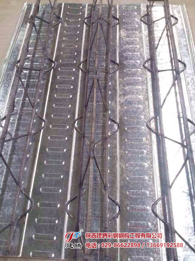 鋼筋桁架樓承板是屬于無支撐壓型組合樓承板的一種;鋼筋桁架是在后臺加工場定型加工,采用硅烷化、磷化、水洗、鍍鋅等除銹防銹工藝,現(xiàn)場施工需要先將桁架樓承板擺放到正確位置,焊接制作鋼筋,后焊接栓釘,再放置鋼筋桁架進行綁扎,防銹膜纏繞密封。