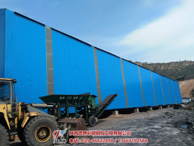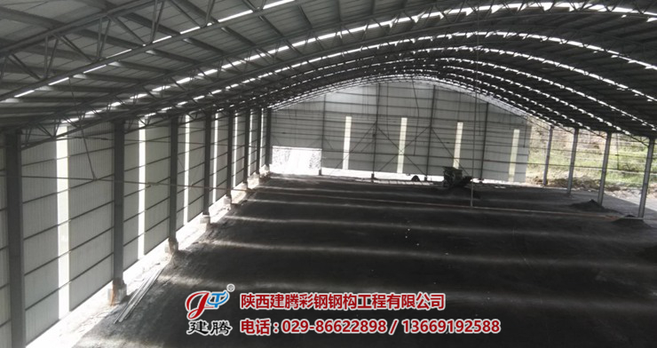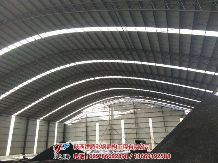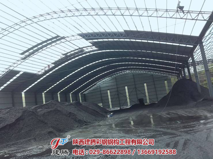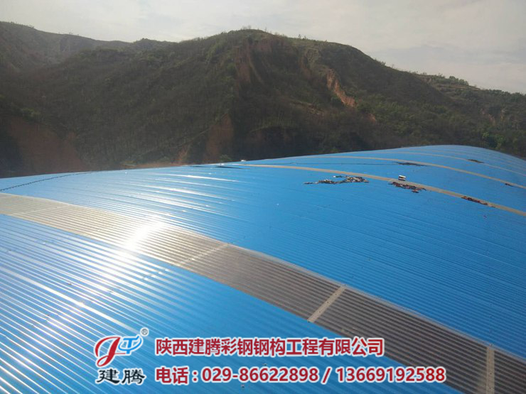 咸陽市旬邑縣席家山煤礦,八千多平方的鋼結(jié)構(gòu)圓弧大棚頂板安裝中,45米超大跨度拱形圓弧大棚現(xiàn)在工程,已進行收尾階段,頂板安裝了三分之二。