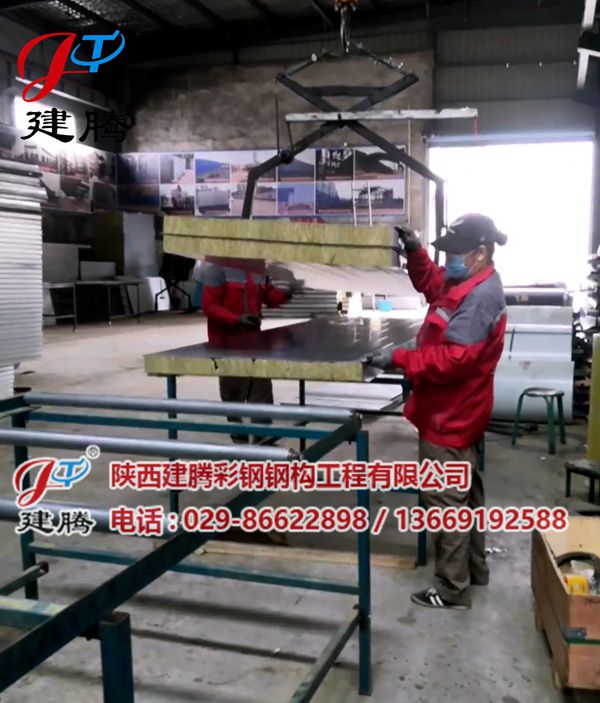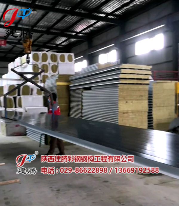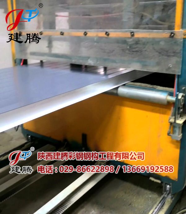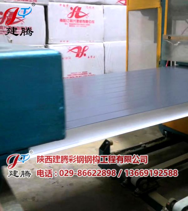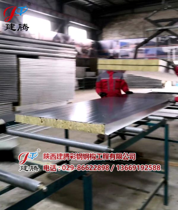 陜西建騰彩鋼鋼構(gòu)工程有限公司 75mm巖棉夾芯板生產(chǎn)中大墻灰 20年專注彩鋼鋼構(gòu)板材廠家 彩鋼瓦|巖棉板|凈化板 今天我們生產(chǎn)的是 75厚950型的一個巖棉夾芯板 客戶給我們下單了 夾芯板開始生產(chǎn)中······