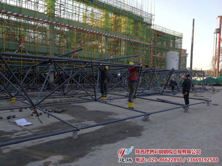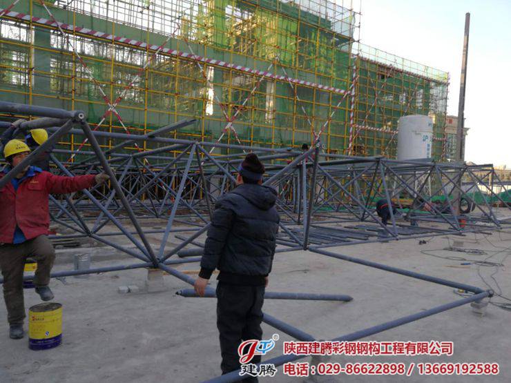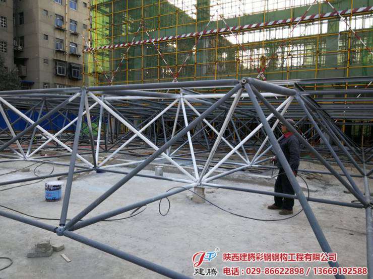 位于西航二校的600多平方的辦公樓,食堂及活動(dòng)中心屋面網(wǎng)架由我公司承建!